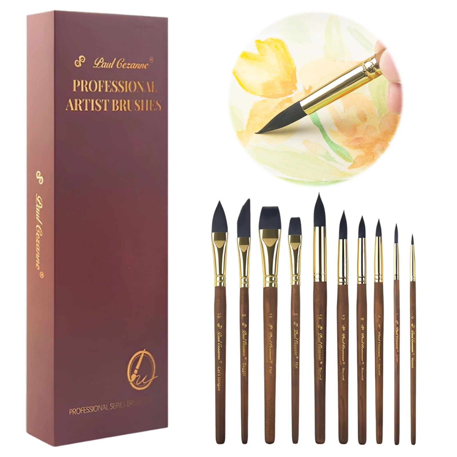 10Pcs Walnut Wood Paintbrush with Pocket Wash Art Brushes Watercolor Painting Brush Set For Acrylic & Watercolor Drawing